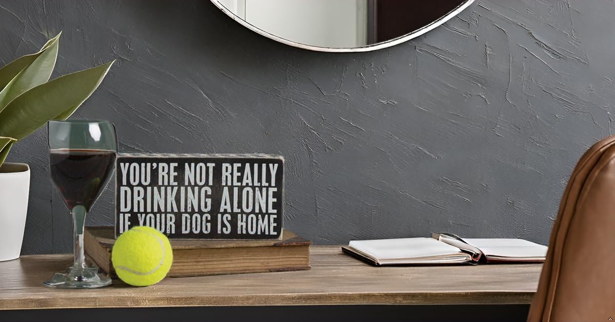 • INSPIRATIONAL QUOTE - The sign reads 'You're not really drinking alone if your dog is home' serving as an inspirational desk decor that also adds a touch of humor to your home.