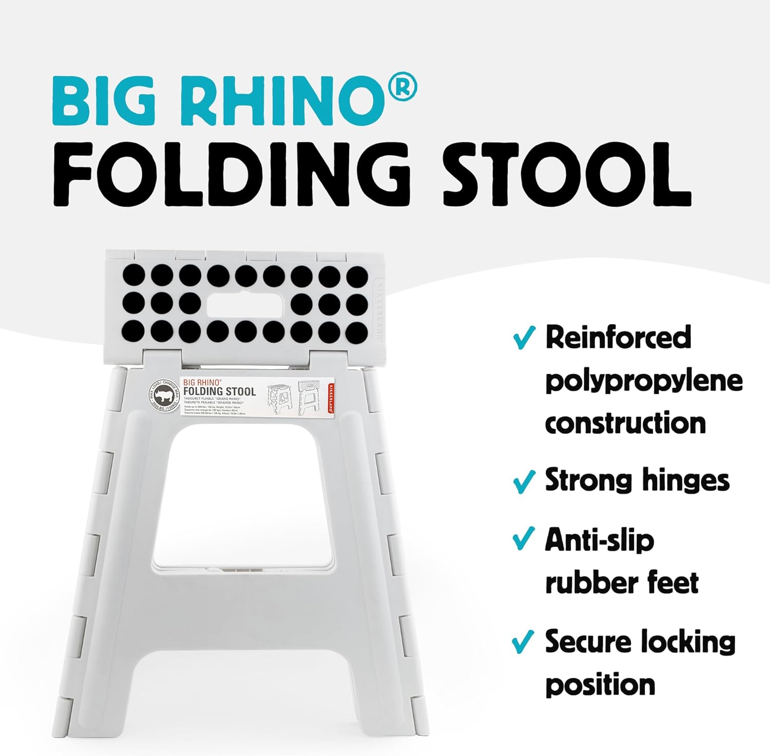 • Reinforced Construction, Anti-Slip Design: Built to last, the Rhino Step Stool features strong hinges for extra support, a polypropylene construction for durability, and an anti-slip rubber base for foot stability