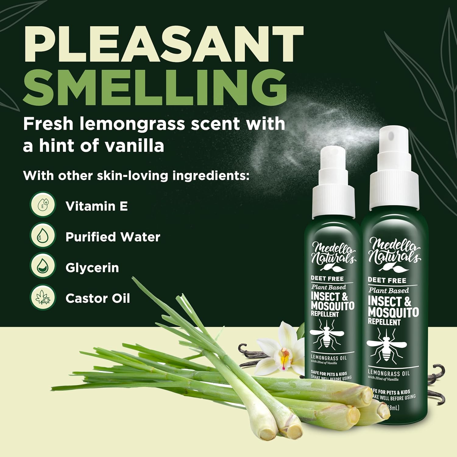 • Naturally Derived Ingredients: Made In The Usa From Skin-Loving Ingredients Like Lemongrass Oil, Vitamin E, Purified Water, Glycerin, Castor Oil, And A Hint Of Vanilla, Which Gives This Spray Its Pleasant Smell.
