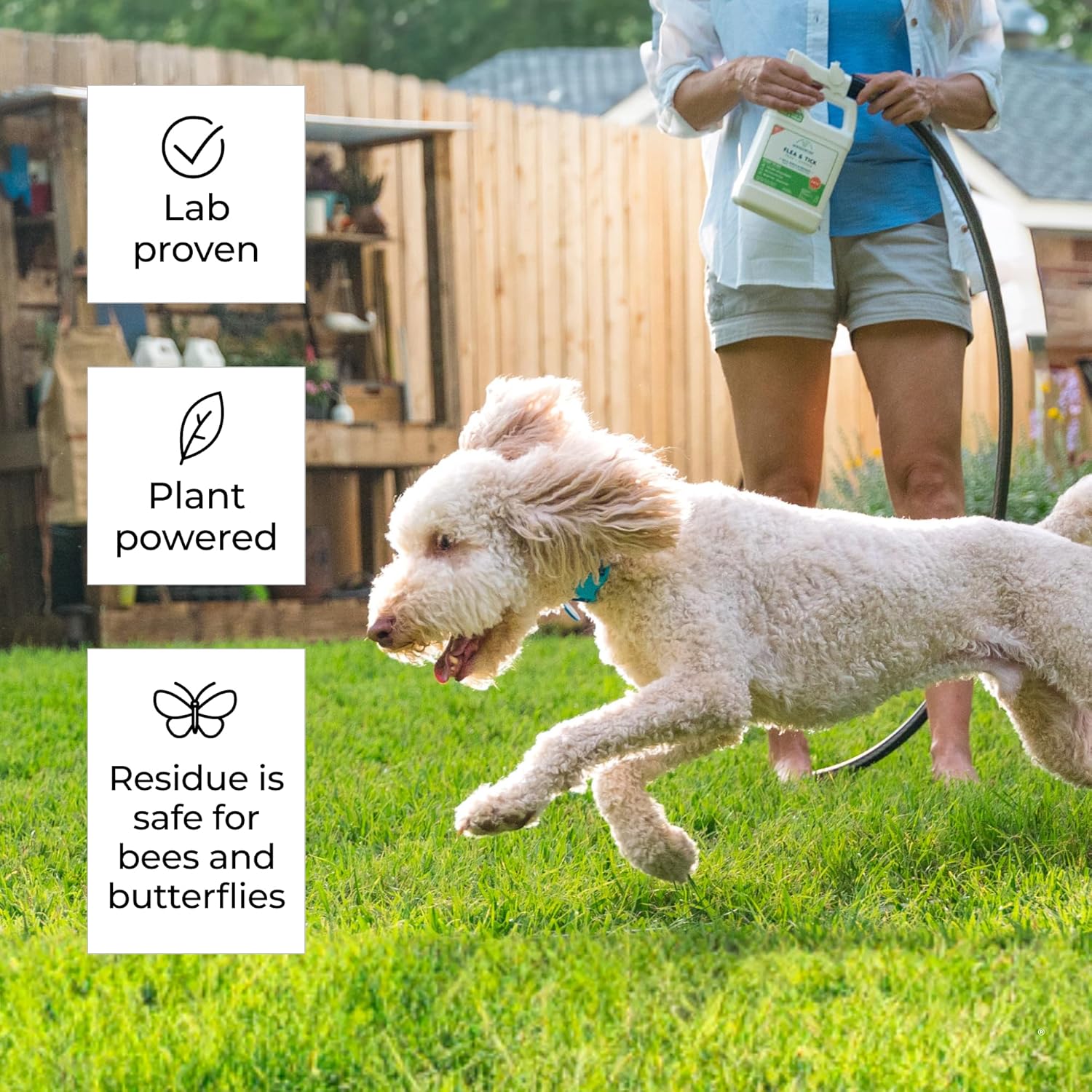 • SPRAY & PLAY CONVENIENCE! PRE-MIXED & READY TO USE. Safe around cats, dogs and people of all ages when used as directed, with no wait time for drying or reentry into sprayed areas and environments. Just attach directly to a garden hose, spray your backyard, and enjoy. Keep the bottle & refill the sprayer with Wondercide Flea and Tick Yard and Garden concentrate.