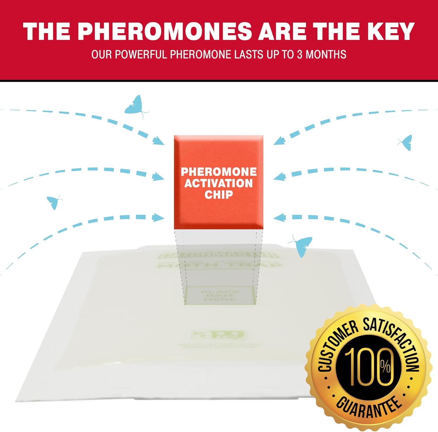 • PHEROMONE ATTRACTANT LURE: Unlike other moth repellent for closets, our indoor insect trap for moths contains odorless female pheromones that attracts and traps male moths, effectively ending the breeding cycle. Our traps are designed with special bait tabs that are safe and effective to use in closet storage or pantry storage areas.