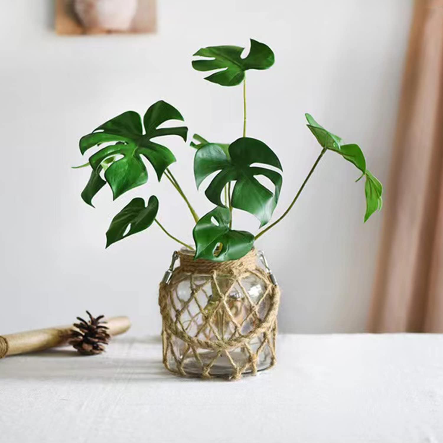 • UNIQUE DESIGN: Thanks to their special rope design with handle on it, these glass vases can enhance your interior space of the style and atmosphere better! NOTE: Plants not included !!
