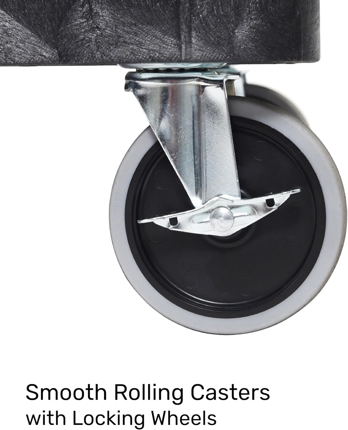 • High-Quality Construction for Lasting Durability: Each utility cart in this 2-pack is designed with rounded corners and built from high-density polyethylene (HDPE) for exceptional durability. Featuring two spacious shelves with 2.5” deep tubs for secure storage, these black carts offer 19.5” clearance between shelves to accommodate larger items with ease, making them perfect for versatile, heavy-duty use.