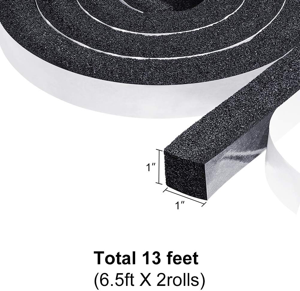 TORRAMI Window Air Conditioning Foam Strips 1 inch W X 1 inch T, Open Cell Foam Weather Stripping Seal InsulatingTape Self Adhesive Total 13 Feet Length (2 Rolls of 6.5 Ft Each)