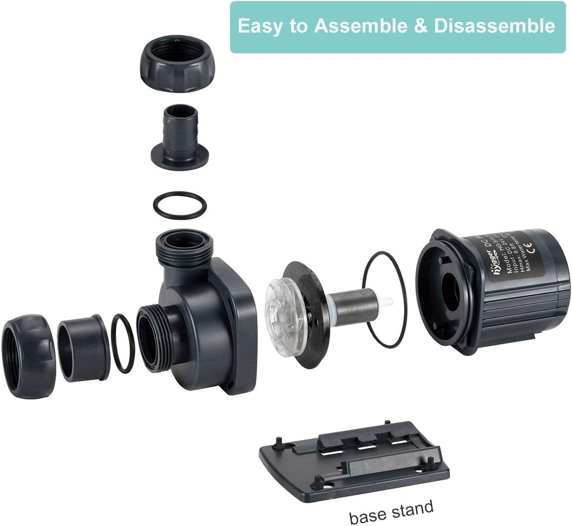 • [ Internal & External Use ] - hygger dcp water pump can be ran externally or be submerged. Please note the controller is not waterproof, must be placed indoors.The water pump inlet and outlet ports with standar size threads, it comes with screws, o rings, pipe connection fittings.You can connect 1", 3/4", 1-1/2", 1-1/4" pipes to the pond pump