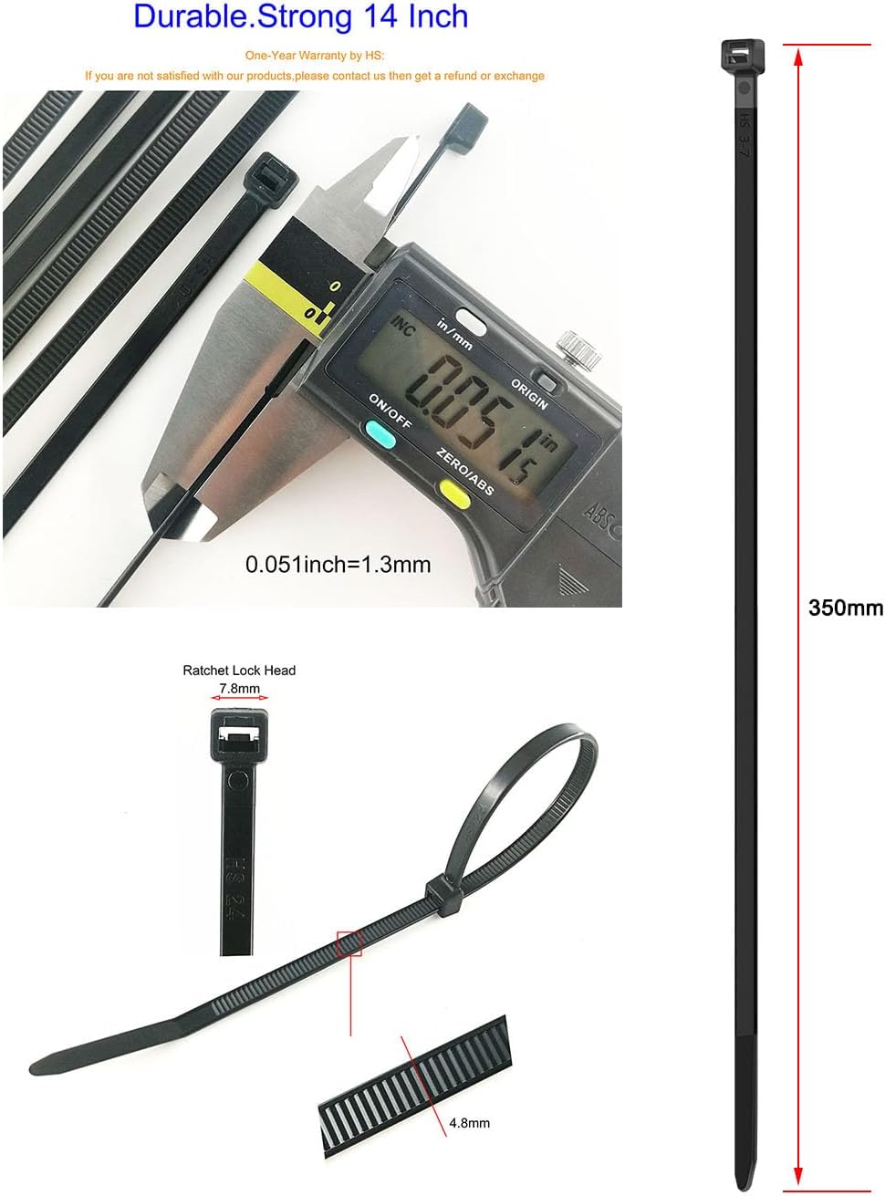 • RISK FREE GUARANTEED - Quality guarantee and 5-star customer service. If you are not 100% completely satisfied with your 14" cable ties, simply let us know and you will be offered a refund or replacement.