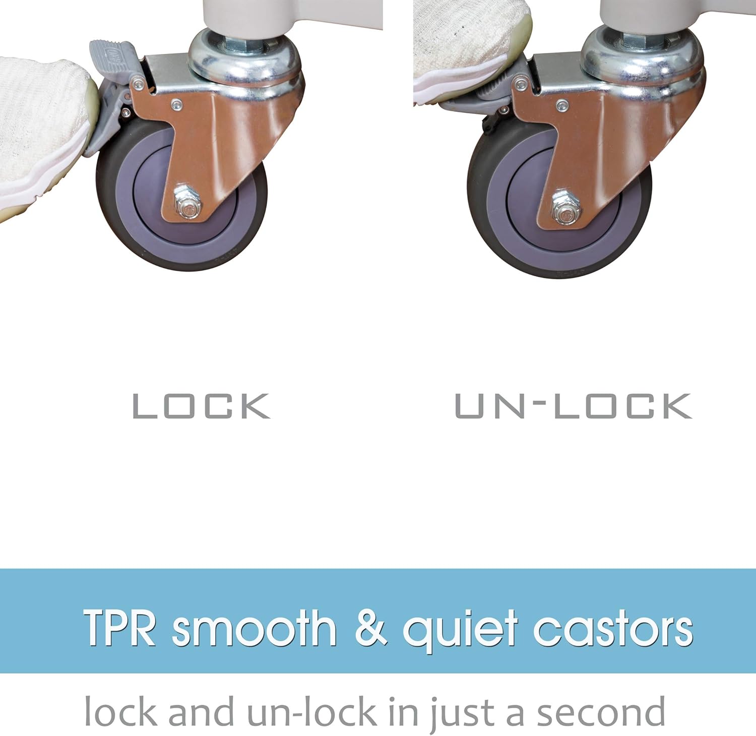 • HEAVY DUTY COMMERCIAL GRADE: made of commercial reinforced Polypropylene with fiber glass in shelves, can hold up to 606 lbs per cart, the advanced design makes shelves top flat and sturdy !