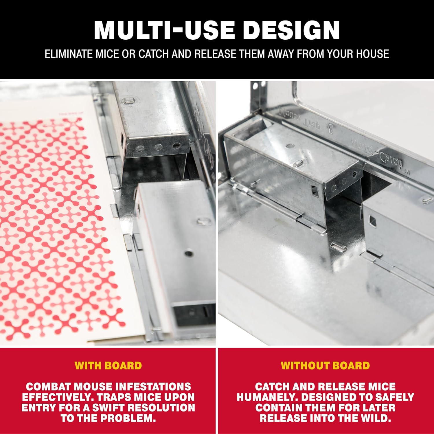 • YEAR-ROUND CONTROL: Catchmaster glue traps for mice and rats are pesticide-free and mess-free. The mouse and insect killer glue traps are an effective and easy solution for insect and rodent problems. When placed in an area with normal conditions, the mouse traps indoor for home can last up to one full year.