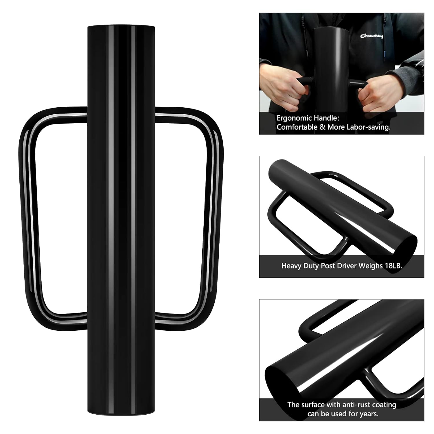 • 【DURABLE & HIGH QUALITY MATERIAL】The fence post driver is made of durable steel with premium, corrosion-resistant powder coating finish of black. Our post hole digger is anti-scratch, anti-fading and anti-rust with the long last metal finishes