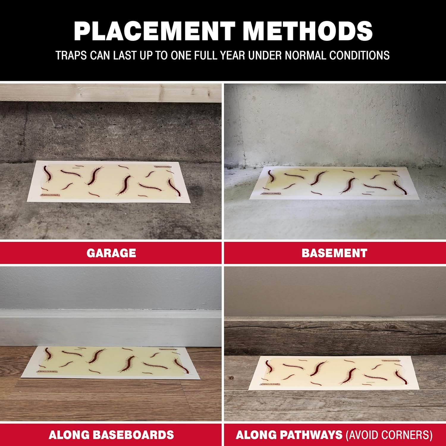 • READY TO USE: Centipede and Insect glue traps are intended for use without bait. For best use, place glue boards along known or suspected centipede pathways and refrain from touching or moving the trap. The indoor insect trap uses a special formula to attract insects. The printed design on the Centipede Glue Trap is more discreet at hiding trapped pests than other glue traps.