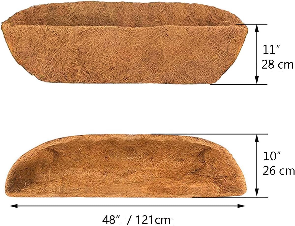 • ✅SIZE: 48"/121cm length, 8"/20 cm width, 8"/20cm depth. Trough shape extra thick replacement molded coir liners for window box.