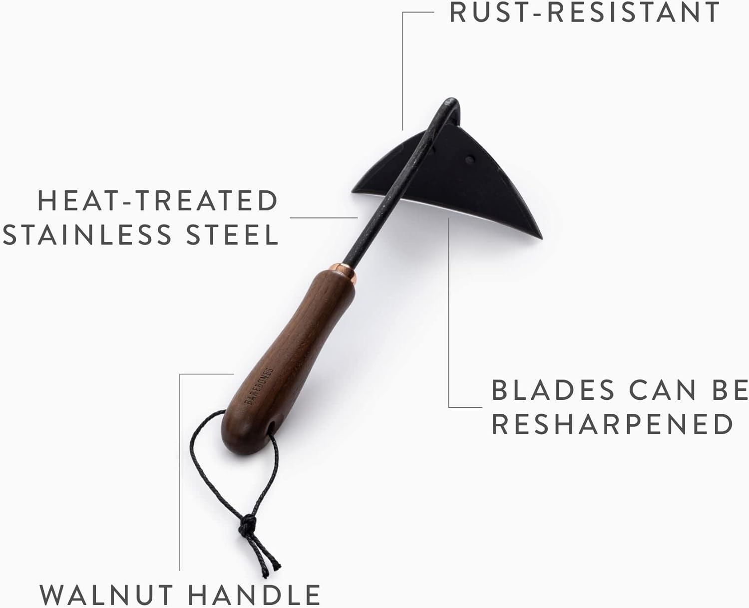 Barebones Triangle Hoe - Stainless Steel Hoe - Japanese Gardening Tools for Weeding, Long Handle and Hand Hoe (Walnut/Black)