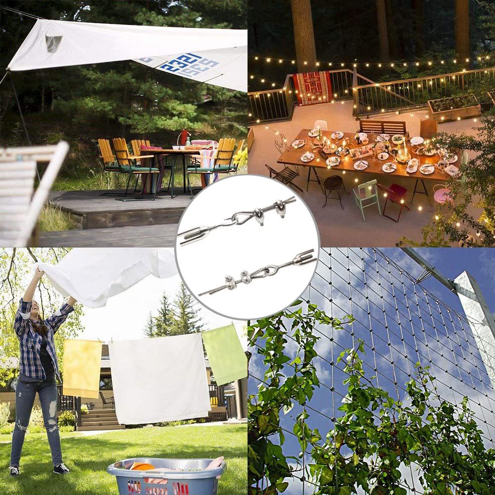 • 【Multi Application】:Suitable for outdoor applications such as tent ropes, clotheslines, outdoor hanging lights, deck cable railings, picture displays, etc. It can also support climbing plants, garden railings, canopies, pergola, etc.
