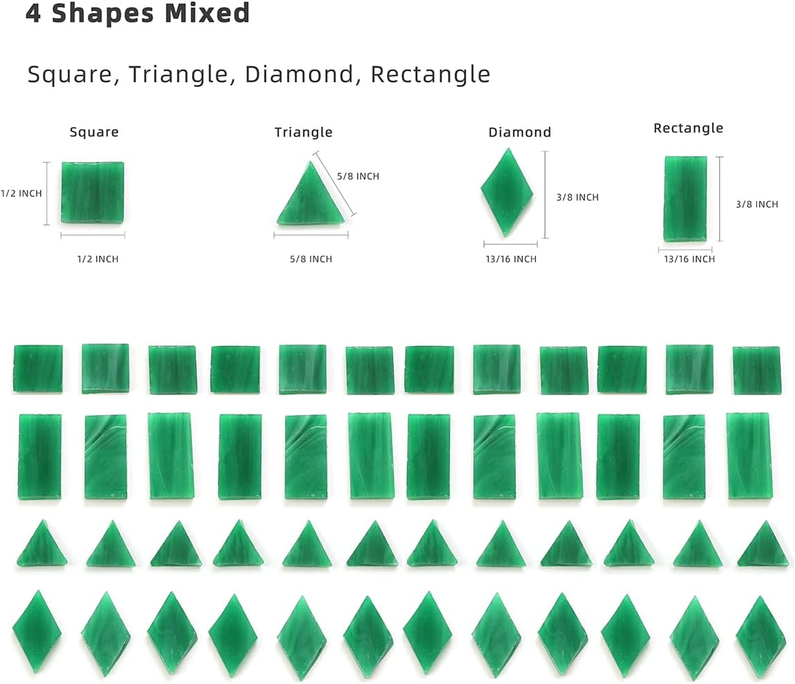 Lanyani 200 Mixed Color Glass Mosaic Tiles - 4 Shapes, Tiffany Stained Glass Pieces for Crafts, Pine Green