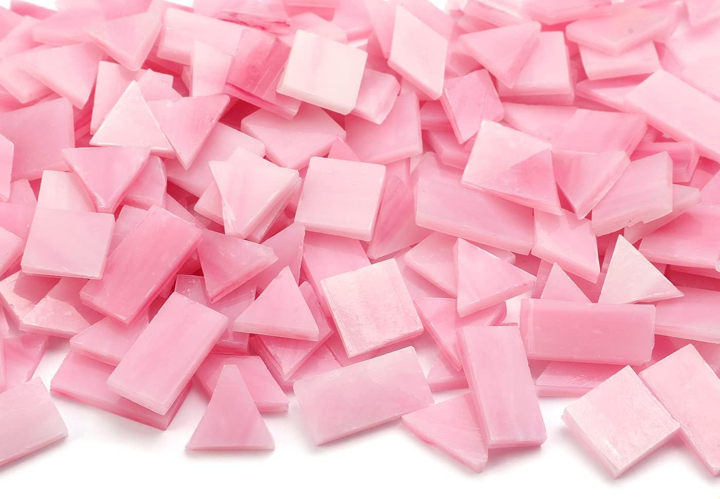 Lanyani 200 Mixed Color Glass Mosaic Tiles - 4 Shapes, Tiffany Stained Glass Pieces for Crafts, Pink