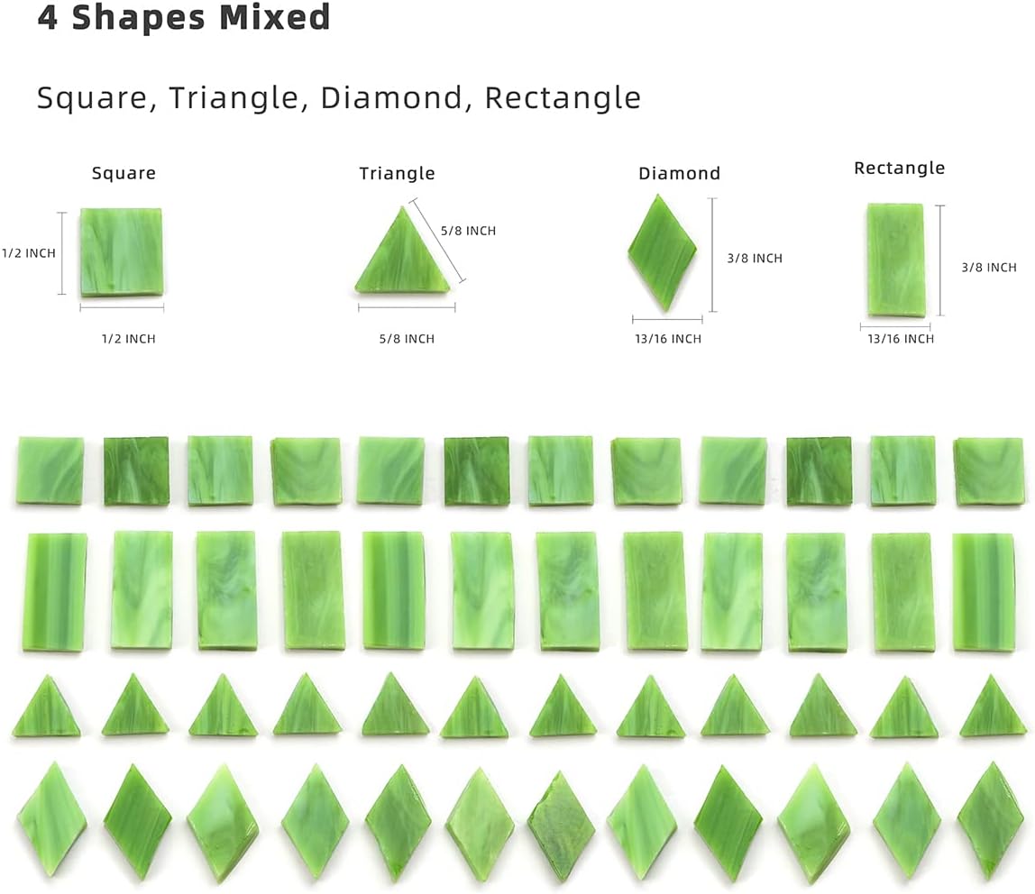 • 4 shapes mixed in each package - These mosaic pieces come with Square, Rectangle, Diamond and Triangle. Having all these precut beautiful shapes will not only save you a tremendous amount of time, but will also inspire you when trying to create new designs