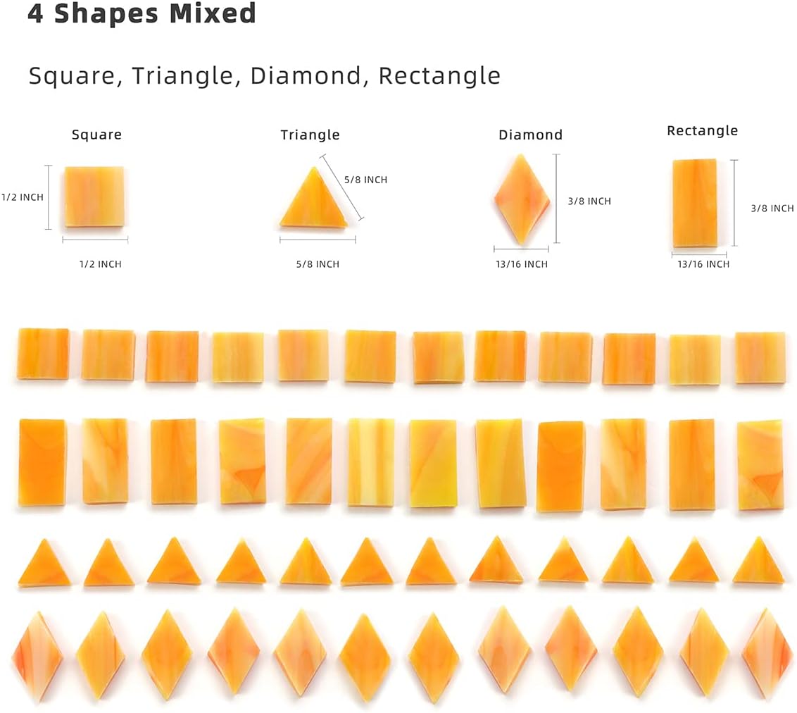 Lanyani 200 Mixed Color Glass Mosaic Tiles - 4 Shapes, Tiffany Stained Glass Pieces for Crafts, Pumpkin Orange