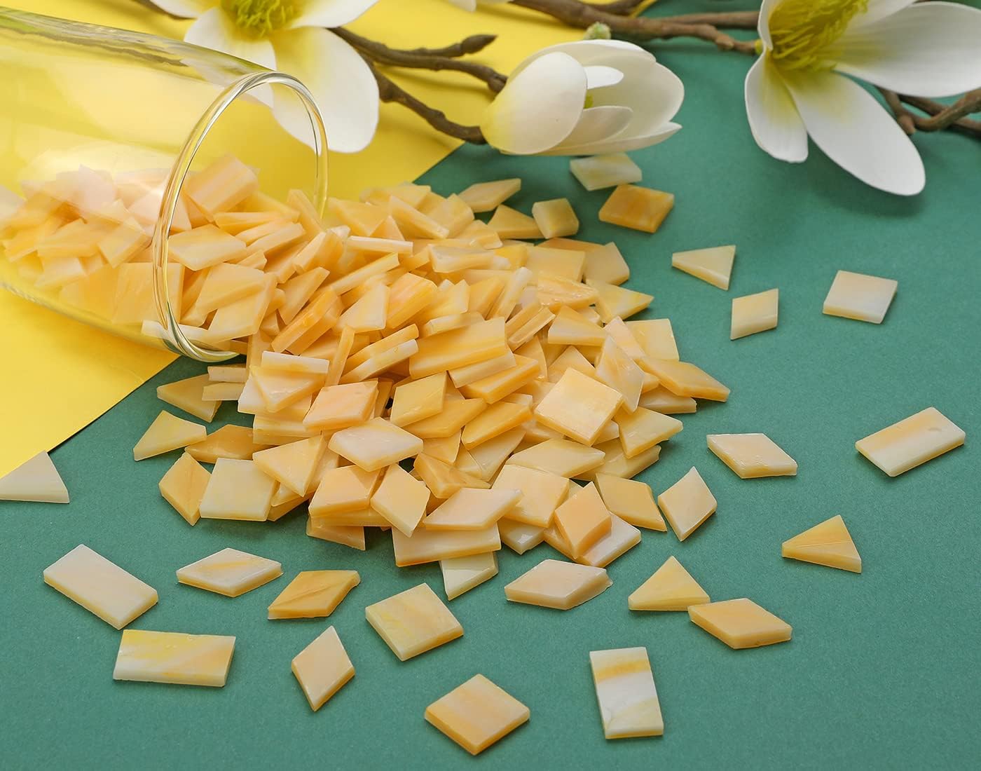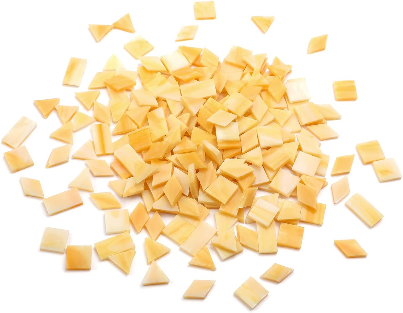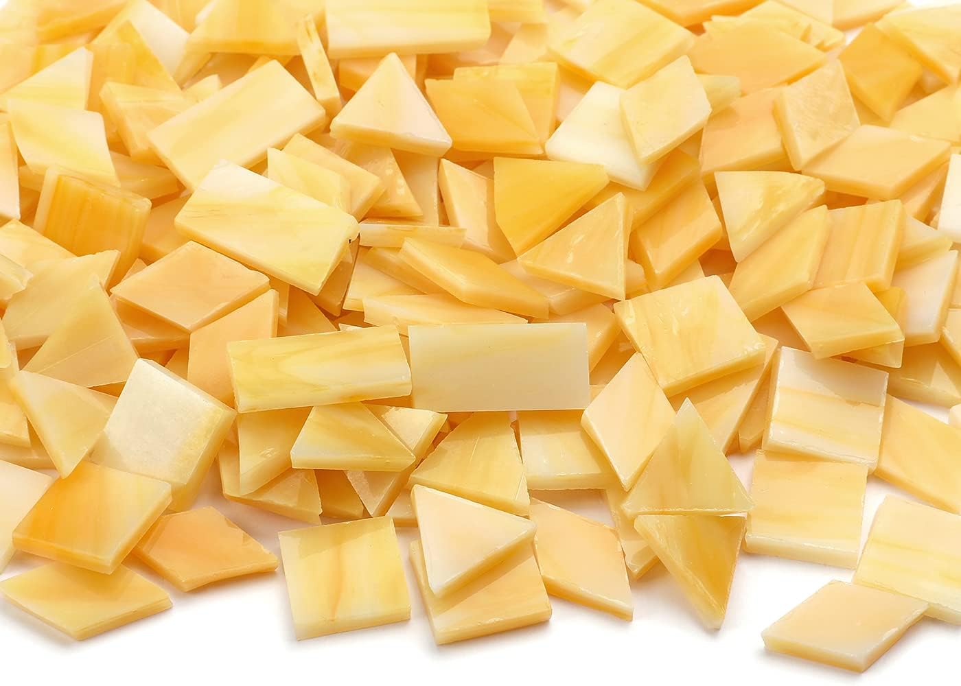 Lanyani Glass Mosaic Tiles for Art Crafts,4 Shapes Mixed Tiffany Stained Glass Pieces,200 Pieces,Square/Rectangle/Diamond/Triangle,Amber Yellow