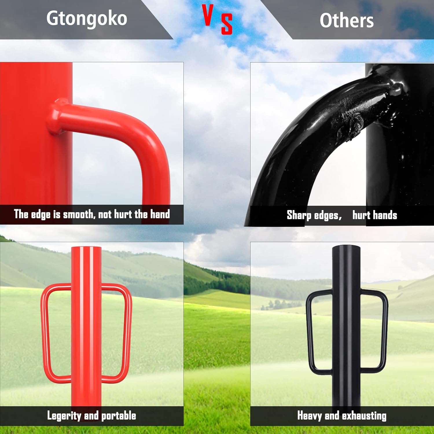• 【DURABLE & HIGH QUALITY MATERIAL】The fence post driver is made of durable steel with premium, corrosion-resistant powder coating finish of red. Our post hole digger is anti-scratch, anti-fading and anti-rust with the long last metal finishes, loop solid handles