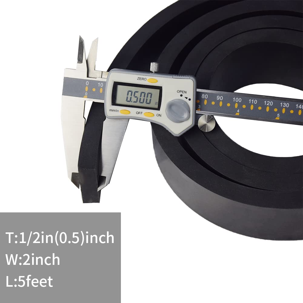 • WHAT YOU GET- You will get solid rubber sheets by 1/2 (.500)" Thick X 2" Wide X 5' Long, and you are protected with our 100% Guarantee for a refund.Please contact us if you have any questions.