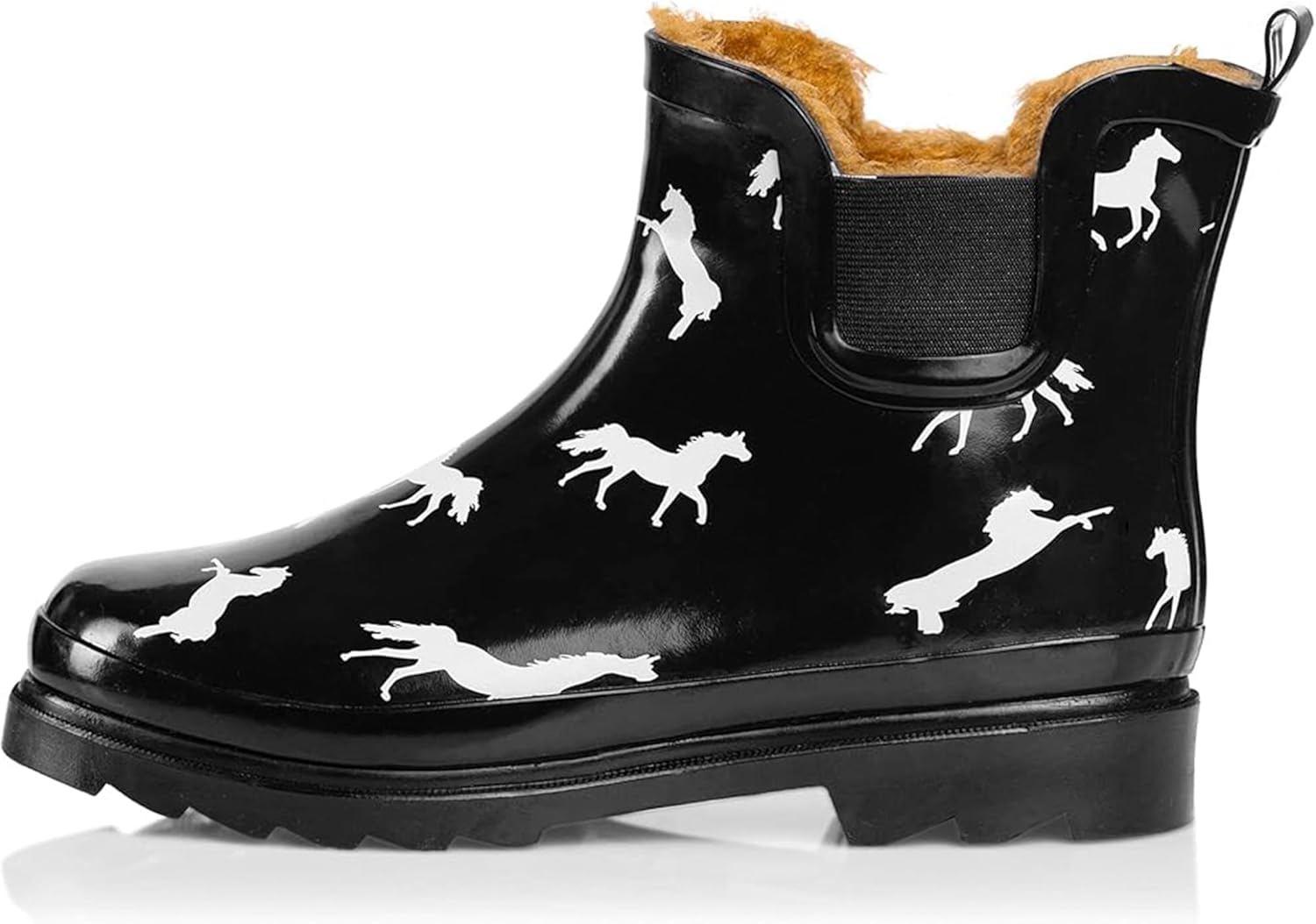 • RUNS A HALF-SIZE LARGER: With extra room for thick socks, these ankle rain boots keep feet warm on colder than cold days. Size Info: US Size: 6, 7, 8, 9, 10, 11 - EUR Size: 37, 38, 39, 40, 41, 42 - Foot Length: 9.25", 9.50", 9.75", 10.00", 10.50", 10.75" Shaft circumference is 12" with boot height of 6" for all sizes