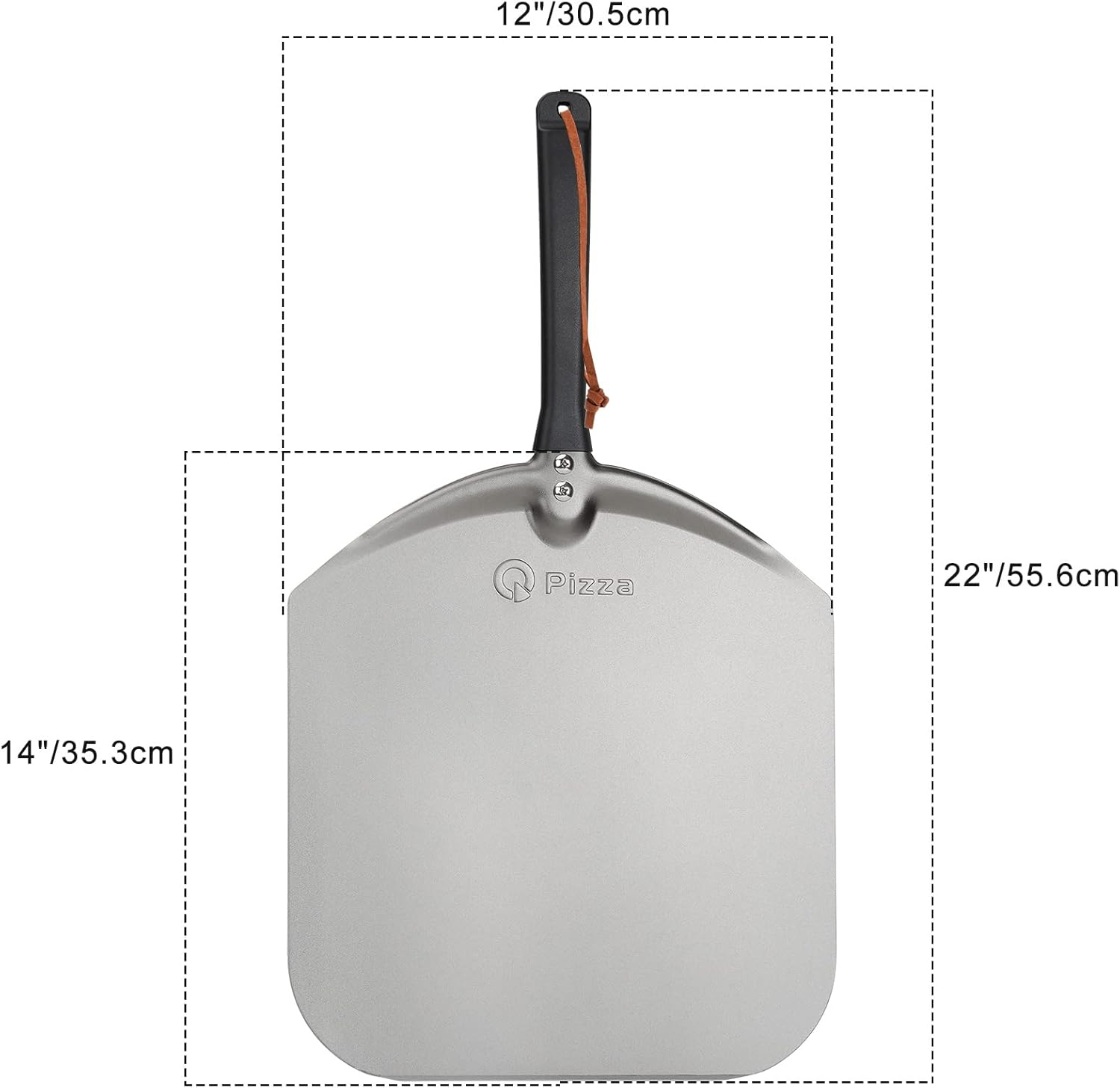 Q Pizza Aluminium Pizza Peel - 12" Metal Pizza Turning Paddle for Grill Oven - Pizza Spatula for Baking Bread Pastry Dough Pie & Cake, Pizza Accessory PT200