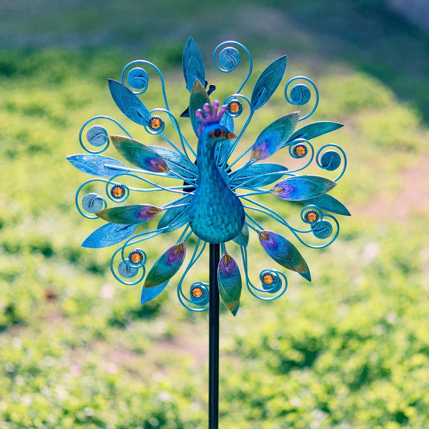 • Peacock Design:Design with vivid peacock, when there is a breeze, it can drive the tail to rotate, adding color to your garden, terrace or lawn and relax your mood