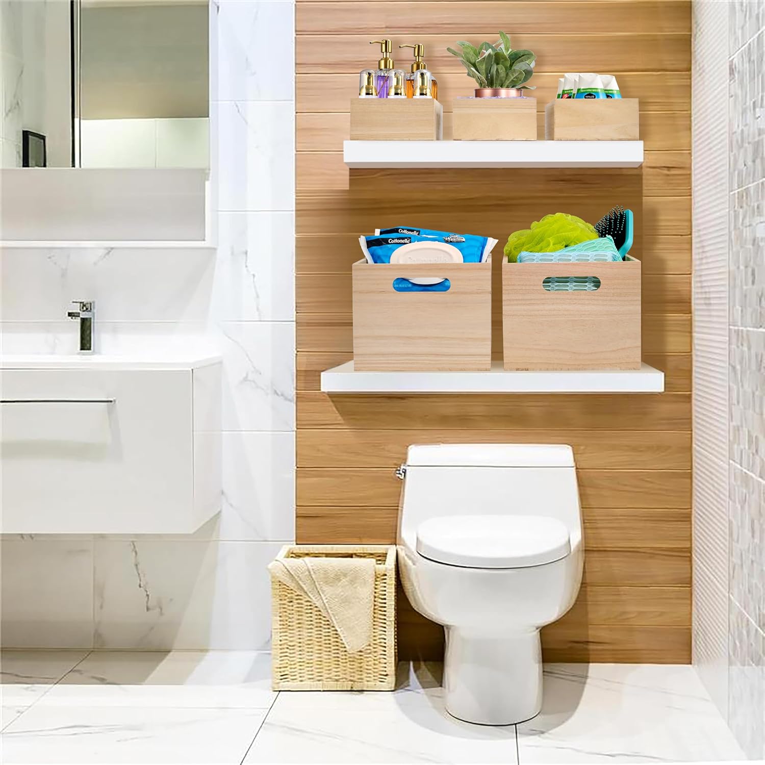 • WOODEN STORAGE BINS (4-PACK) — Provides modern storage for household essentials with a natural look — Pairs nicely with similar styles in the Sorbus Wood Bin Collection (sold separately)