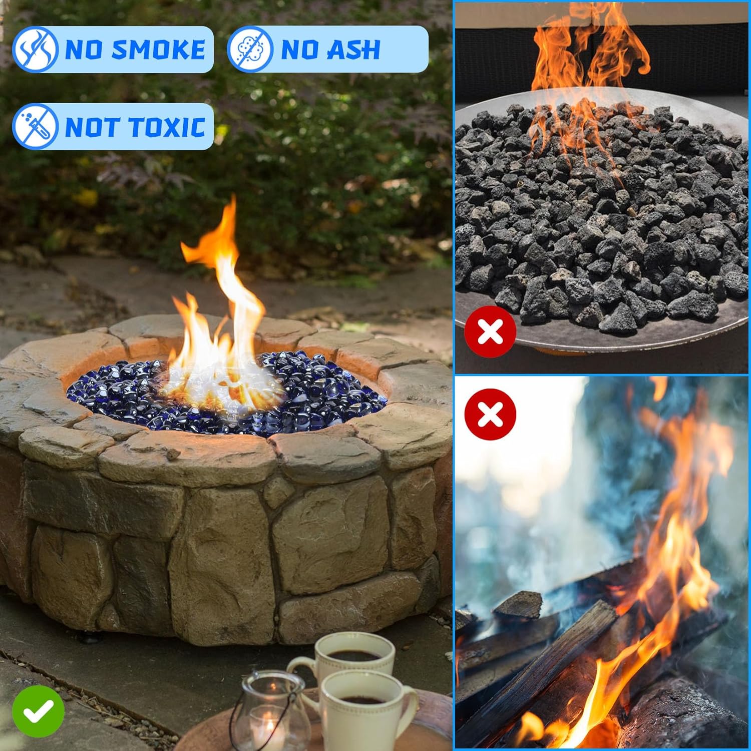 • 【Safety】Fire glass are thermally tempered to withstand extreme temperatures and guaranteed not to burst, smoke or fade.
