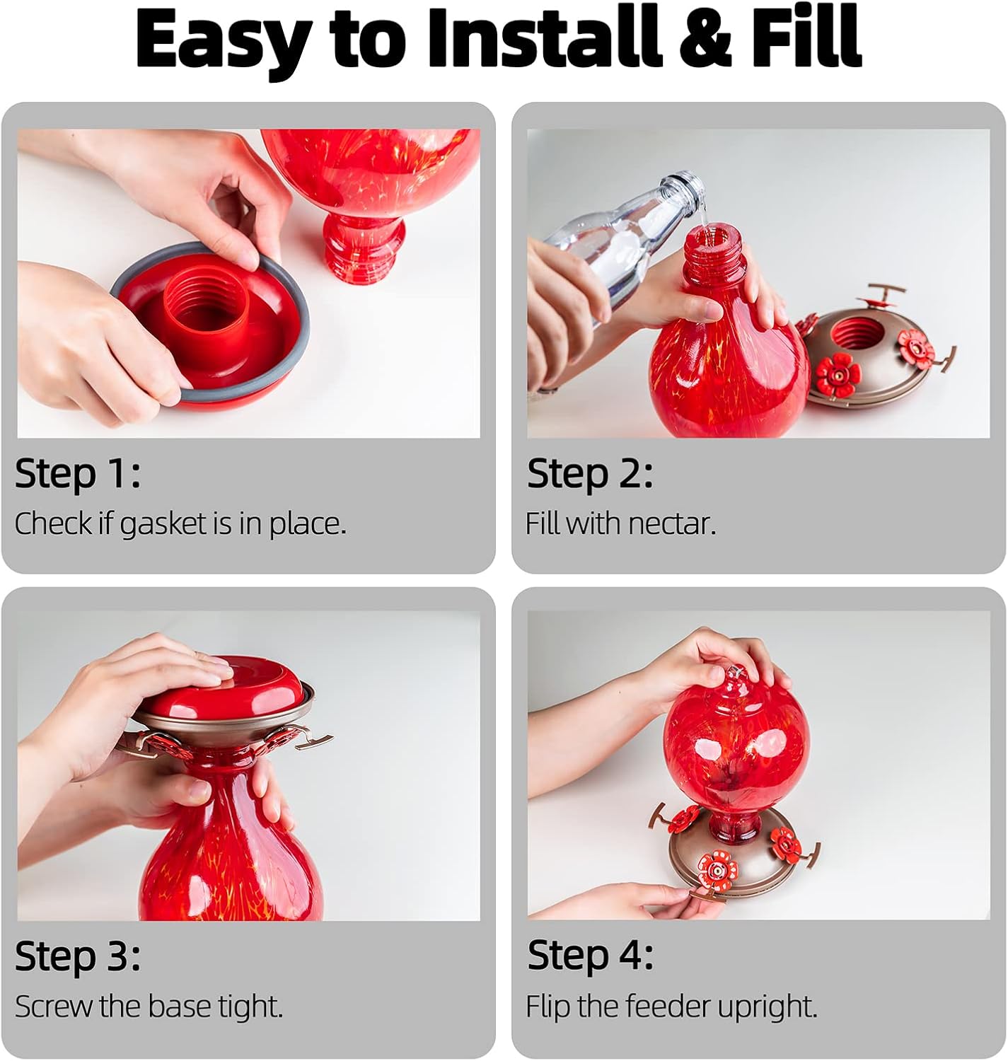 • 【Easy to Fill & Clean】: Designed with wide mouth opening, it's very easy to fill this with nectar, also convenient to clean with a bottle brush.