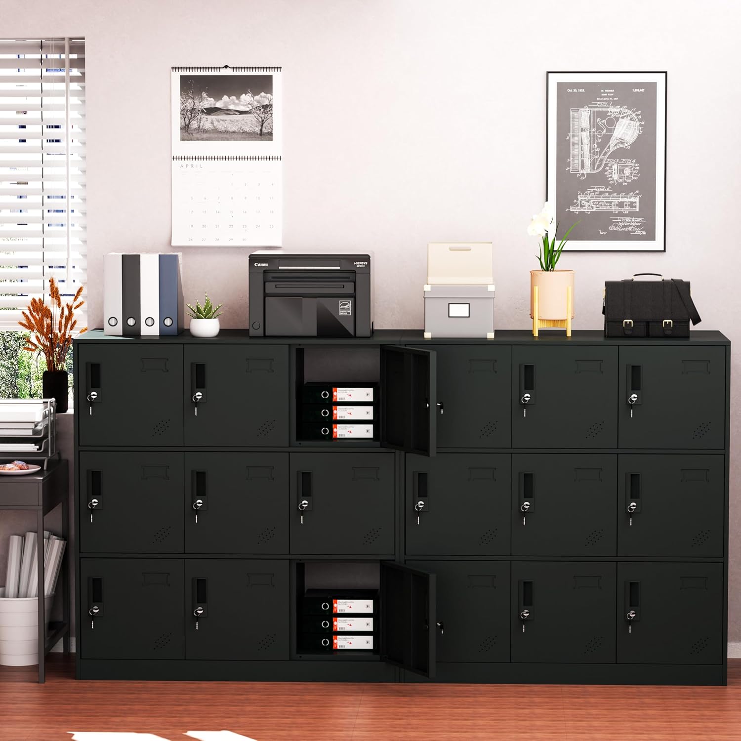 9 Doors Metal Lockers for Employees, Steel Storage Locker with Lock and Card Slot,Lockable Office Metal Storage for School Office Gym Bedroom,Garage (Black)