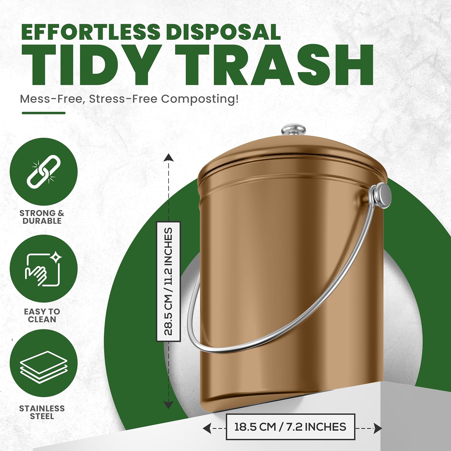 • Sturdy, stylish and sleek design complements any decor so that this kitchen compost bin can sit conveniently on your counter-top or wherever you need it