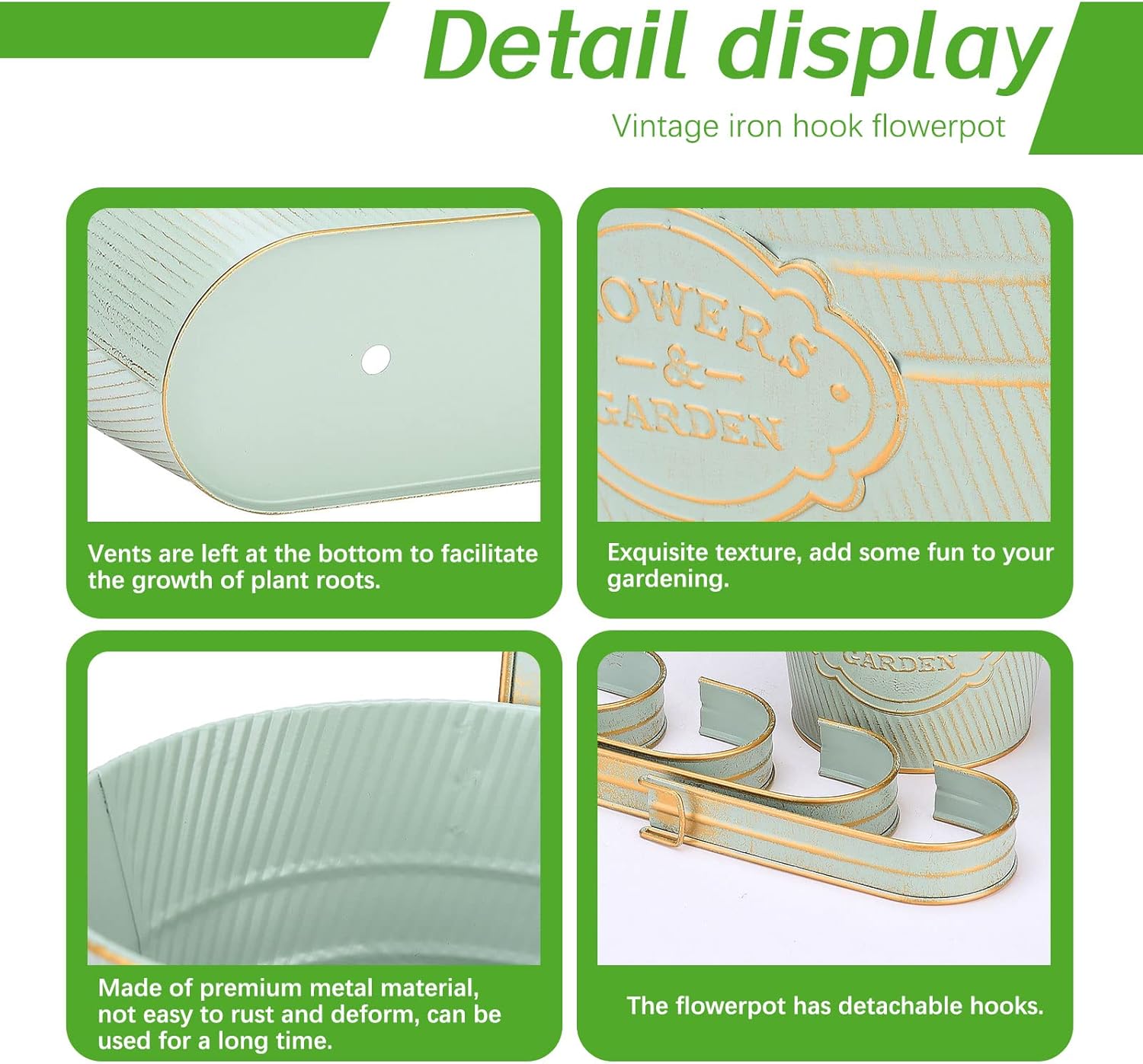• 【DURABLE PLANTERS】Constructed from. high grade galvanized metal sheet makes it highly durable and strong enough to sustain extreme weather conditions. Unlike Plastics, its color will not fade away and have a longer life than expected. Treated with Zinc and triple powder coat makes it resistive towards rust and corrosion. Lacquer Finish on the planter cut down the leakage to 99%.