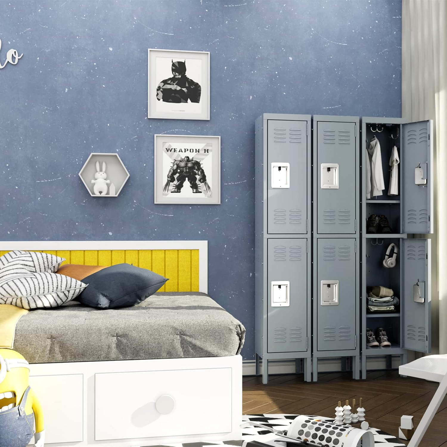 • 【Multiple Uses】Steel storage locker with simple and compact appearance can easily blend with most of places, such as school, home gym, locker room, porch, dressing room, office, dorm room,classroom.etc.