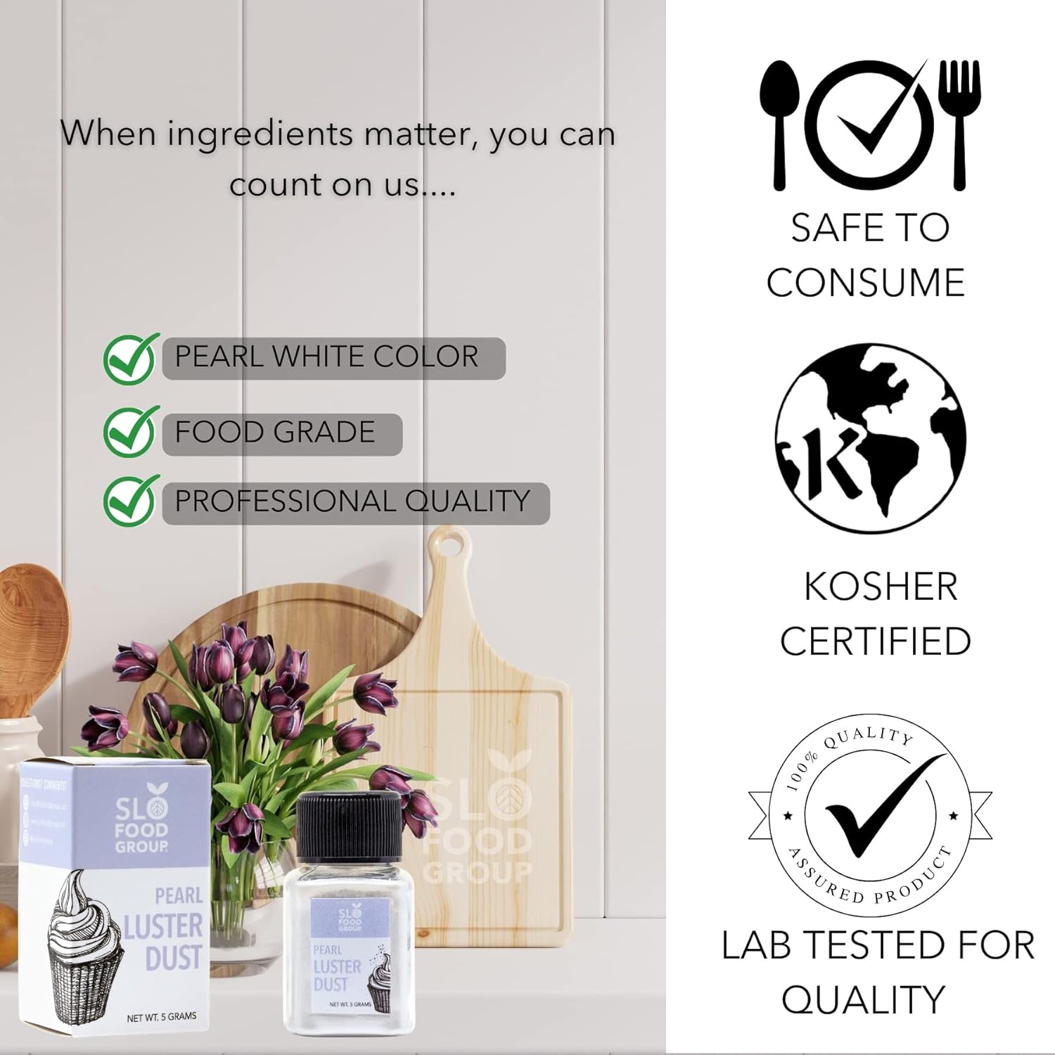 • Kosher Certifided- All edible giltters and dust powders are certified kosher by EarthKosher
