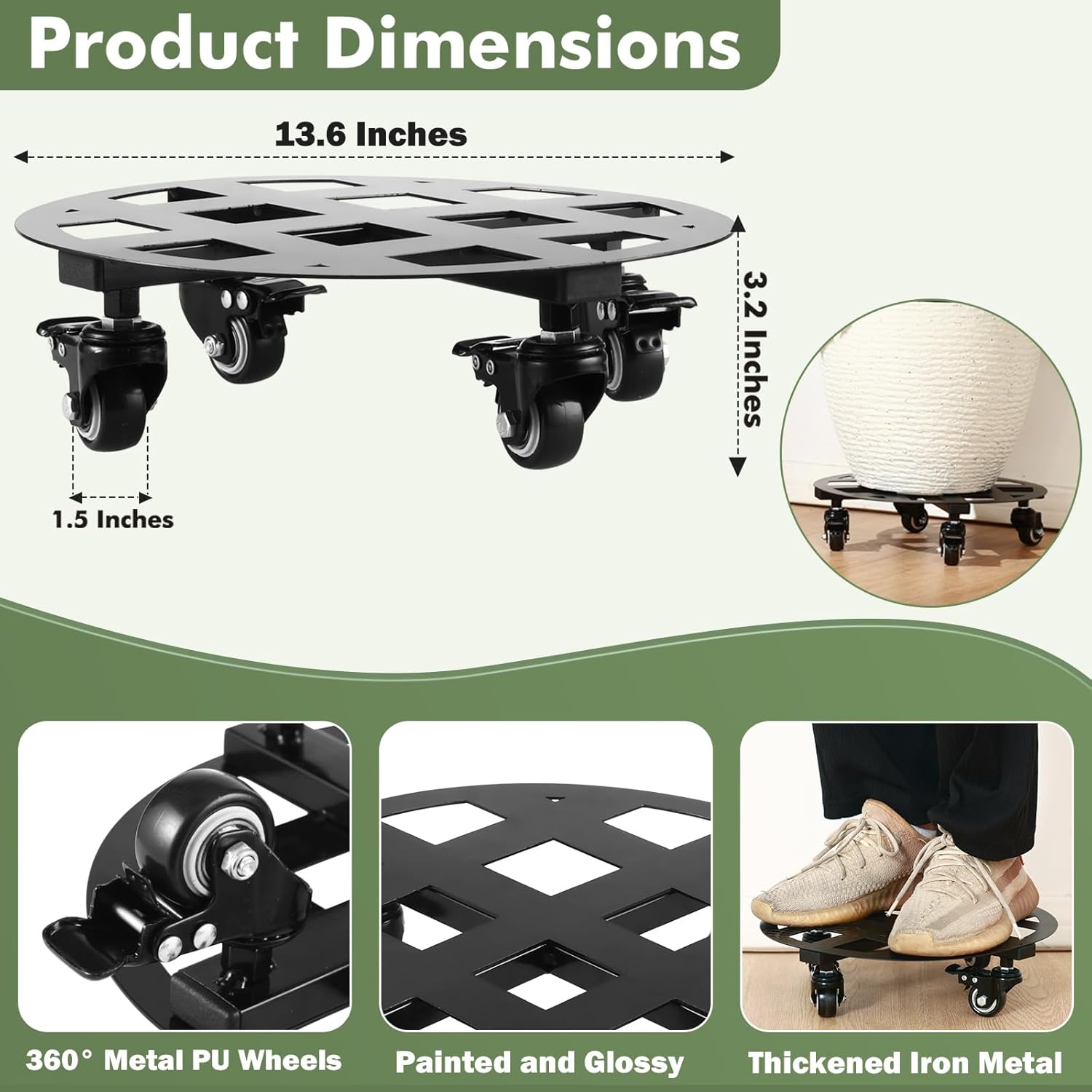 • Unique Design: The package will come to you with 1 packs of 13.6” metal plant caddy, which is special designed with square lattice. It holds the heavy plant pots while add an addition to your home decor.
