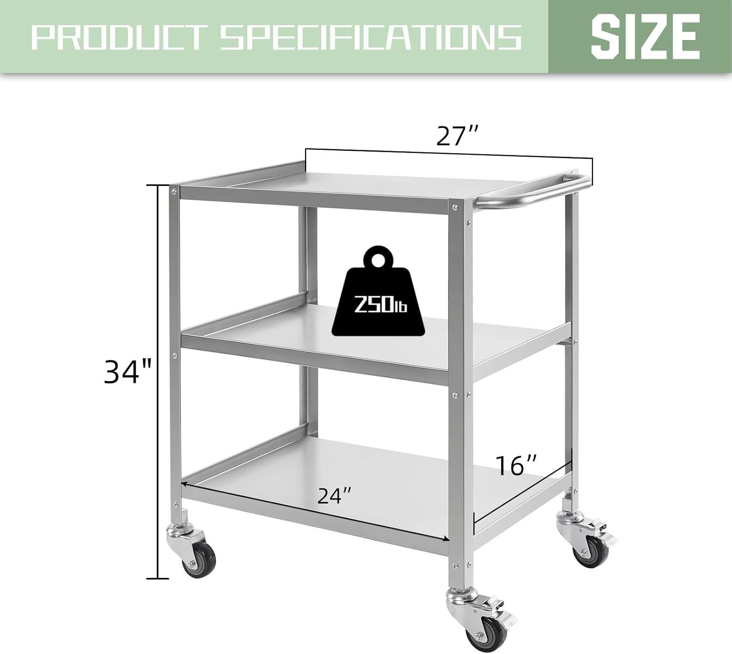• Large Practical Storage: The 3 tier stainless steel utility cart is so convenient for storing items, with a load-bearing capacity of up to 250 lbs, suitable for kitchens, restaurants, laboratories, hospitals, offices, or any other commercial environment, and can be considered the perfect storage rack
