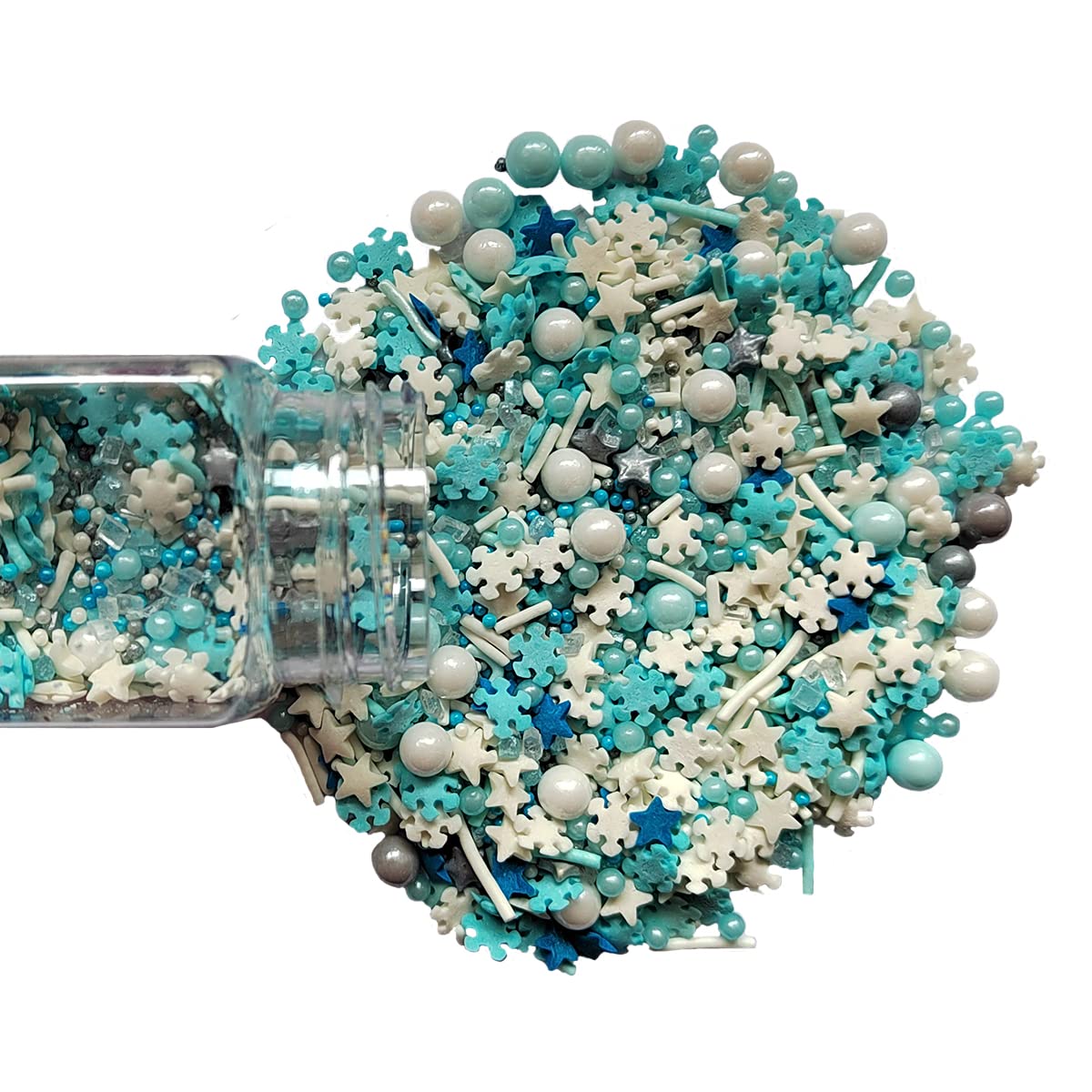 • Package includes: 1 bottle edible snowflake sprinkles candy, 3oz/85g