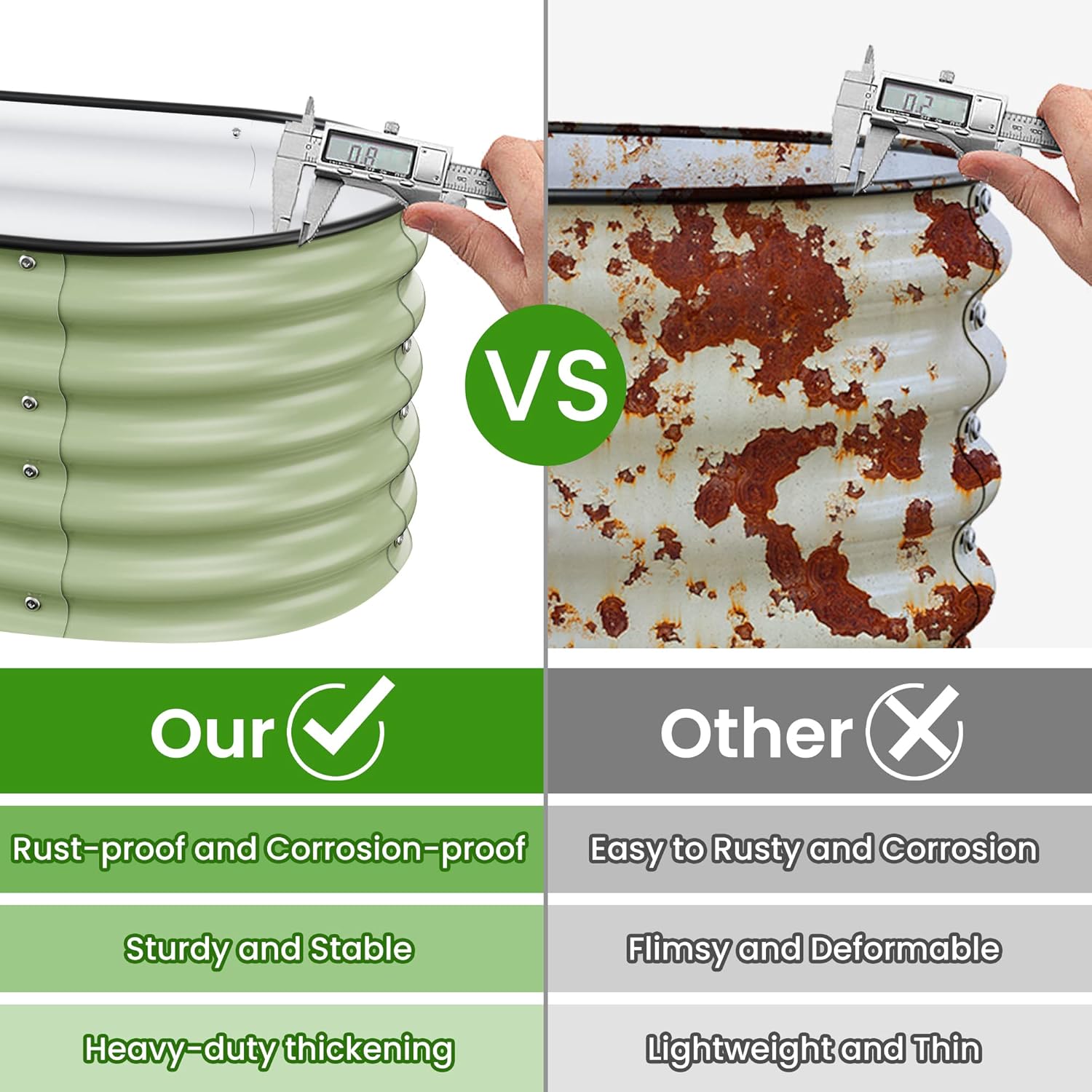 • Long-Lasting Quality:The garden beds are made of zinc aluminum-magnesium steel for durability. This advanced material is more resistant to corrosion and rust than traditional galvanized materials. Lasts 2-6 times longer than traditional galvanized raised beds, far longer than wood raised garden bed.