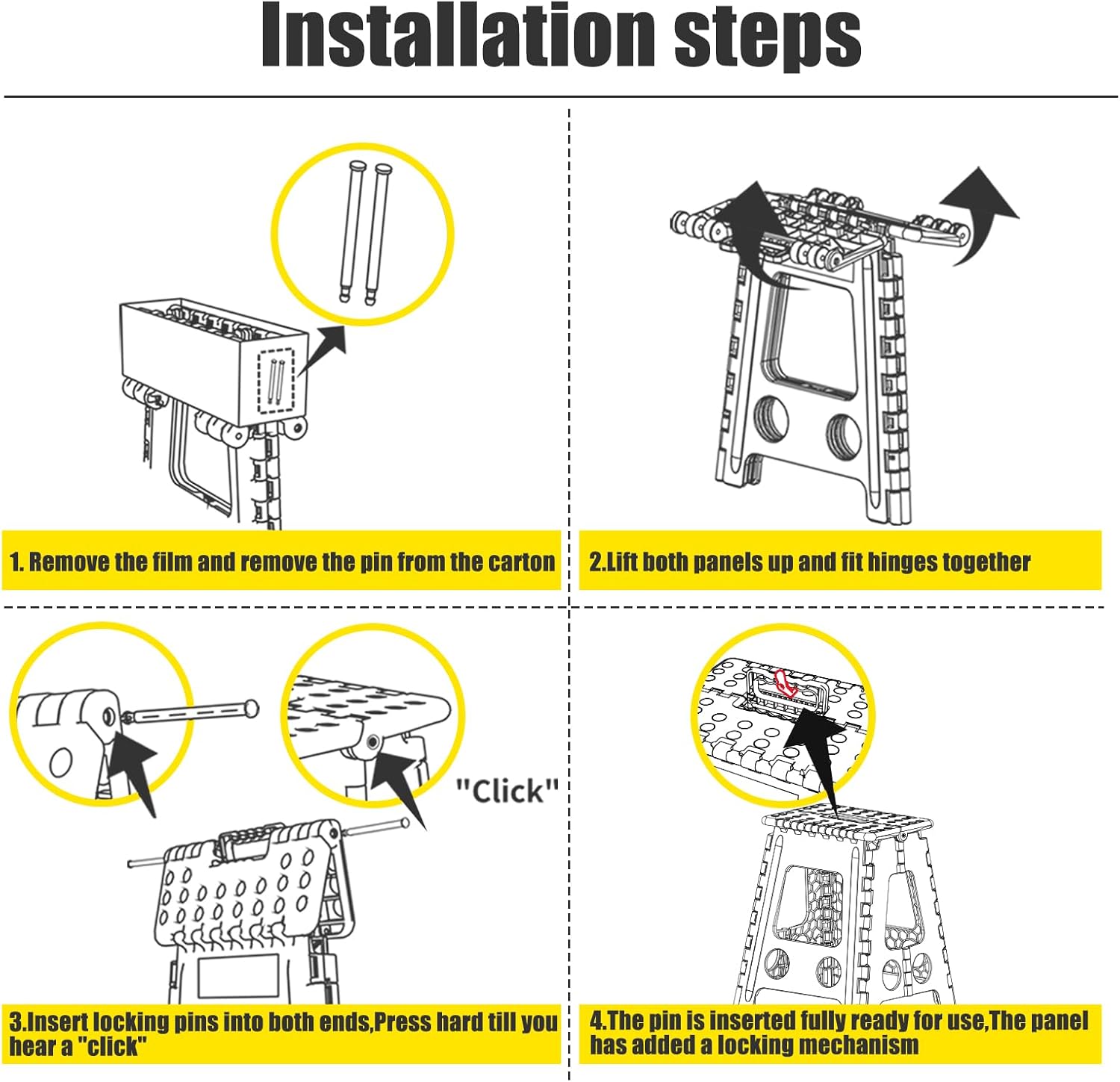 • Loads Up to 400lbs : The internal structural design 17.5 inch Folding Stool in Black is unique makes the step stool extra strong and safe. It can hold up to 400 lbs Max !!! Which is mainly used for adults indoor sitting. Please make sure the step stool is fully opened before use.Note: The size is measured manually, there may be a measurement error of 1-3cm