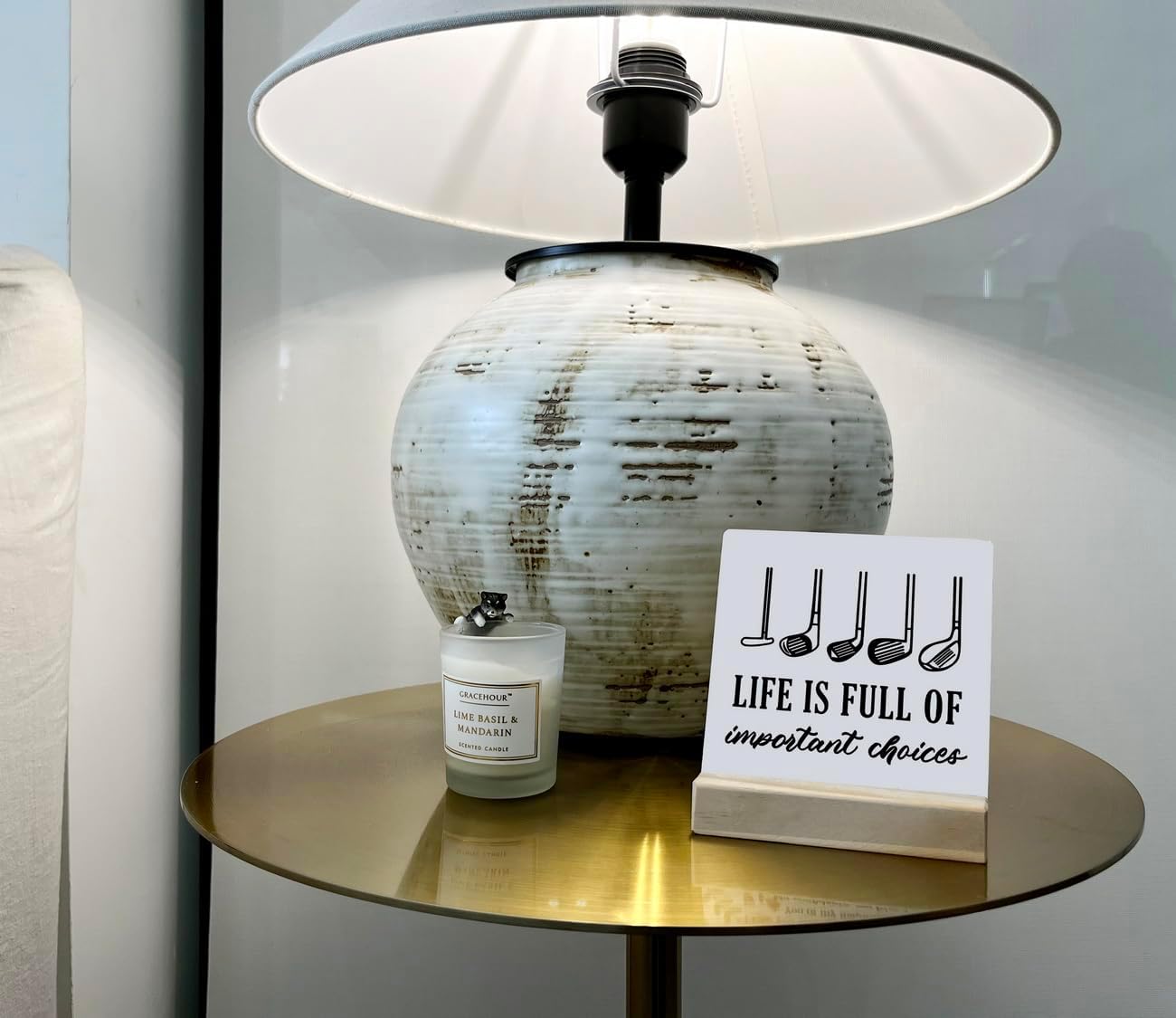 Primitive Wooden Sign - Life is Full of Important Choices, Desk Plaque with Wooden Stand, 4 x 4.3 inches, Golf Life Sign, Office Table Decor, Gift for Friends