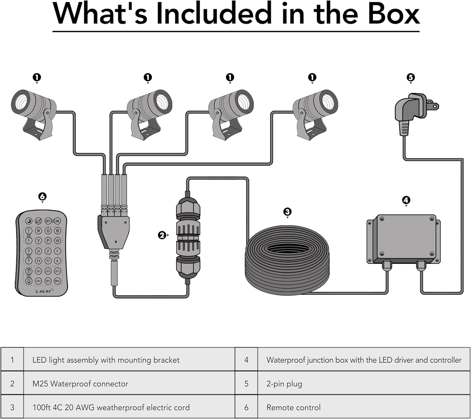 • RGB Color-Changing LED Fountain Light Sets. One remote control and one outlet timer included.
