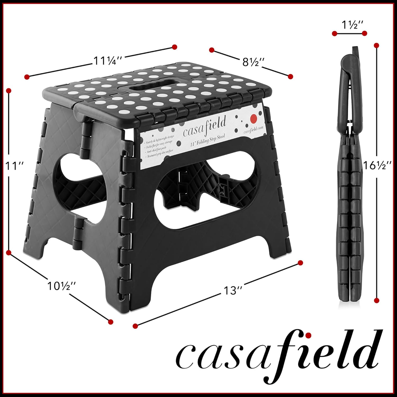 Casafield 11" Folding Step Stool with Handle, Black - Portable Collapsible Small Plastic Foot Stool for Kids and Adults - Use in The Kitchen, Bathroom and Bedroom