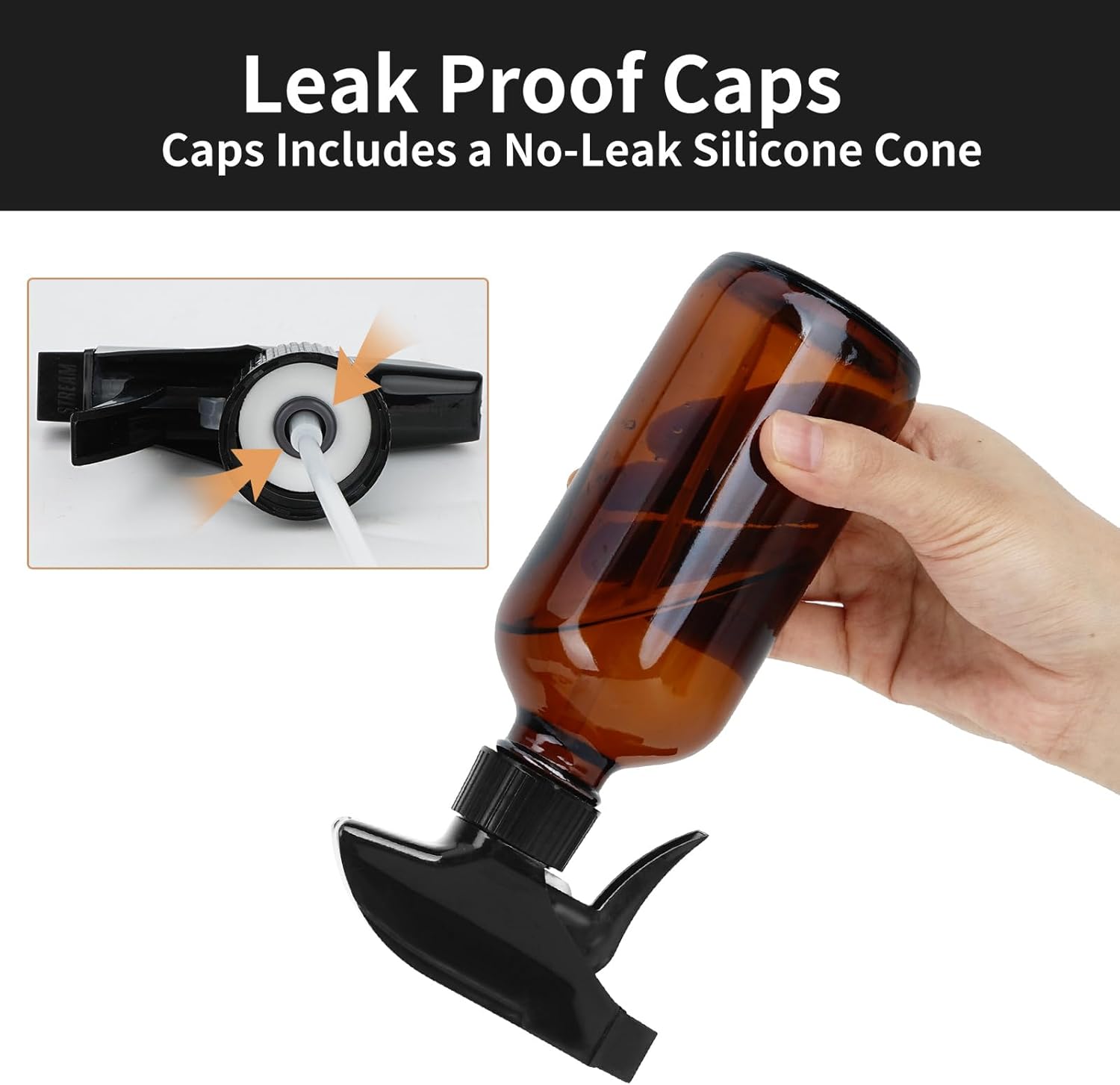 • What You Get - 1 8.4oz/250ml glass spray bottle, 1 2oz/60ml amber spray bottle, 1 2oz/60ml royal blue glass bottle, 1 Funnel, 1 Dropper, 1 cap for 8.4oz/240ml bottle.