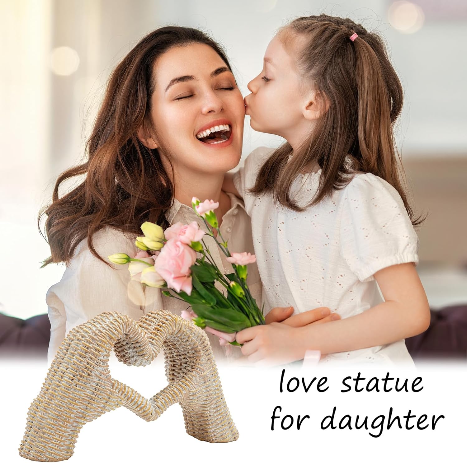 Heart Hands Sculpture, Gold Room Decor for Living Room Bedroom Bookshelf, Gifts for Mom Mother' s Day, Father's Day (No Bracelets) Rattan