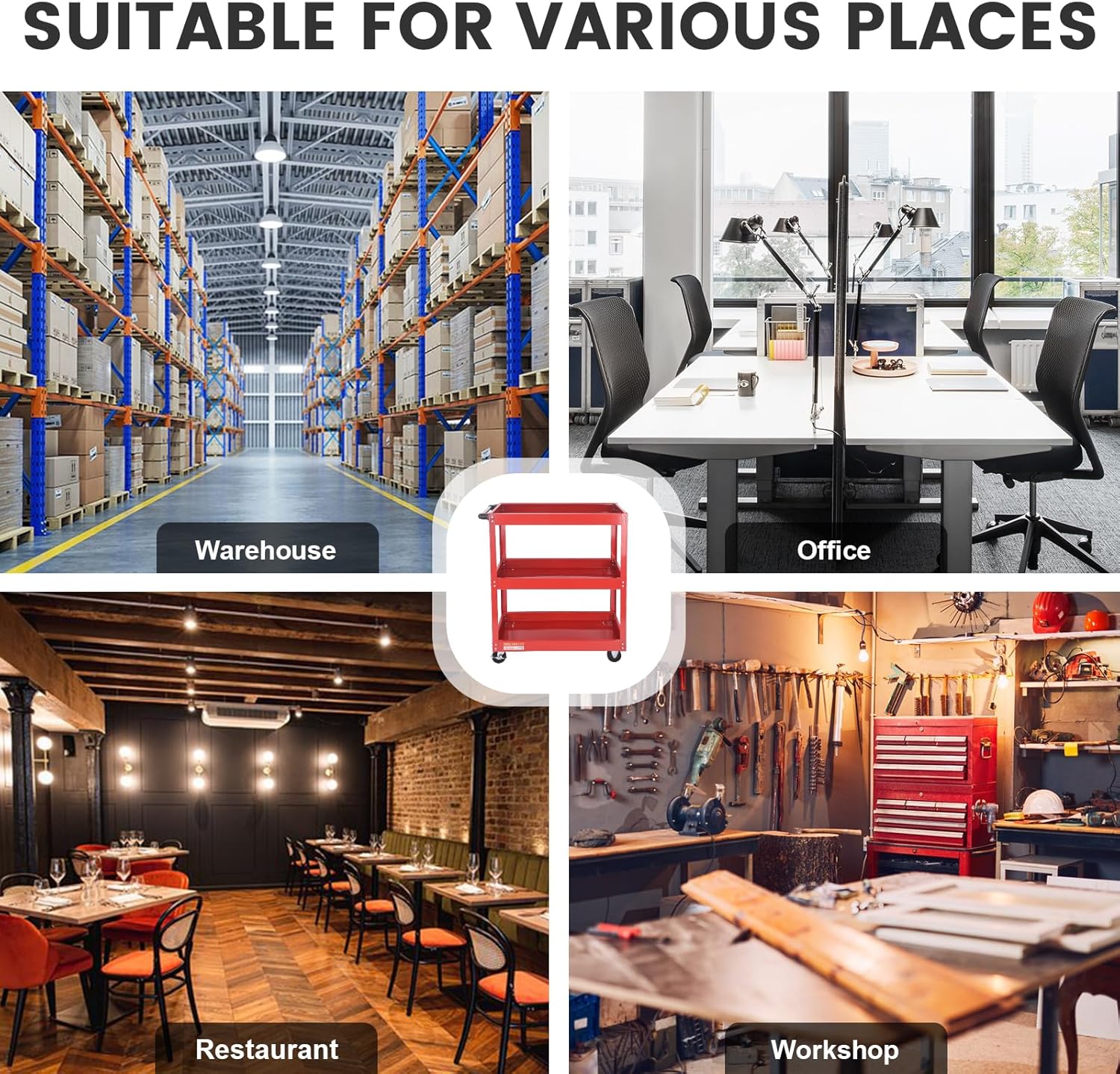 • 【Versatile Utility Cart】Our Commercial Rolling Tool Cart is constructed with versatile design, which can be utilized in various occasions, such as warehouses, home, office, restaurant, workshop, garage, repair shops etc. With the humanized handle and rolling wheels, you can move it everywhere.