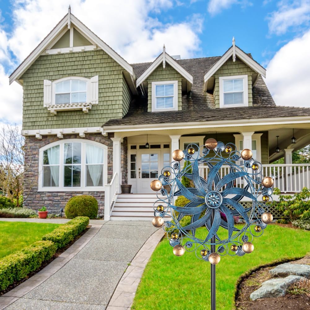 • Premium Construction:This double pinwheels has a solid metallic construction with easy spinning, blue blades can smoothly rotate on sealed bearings