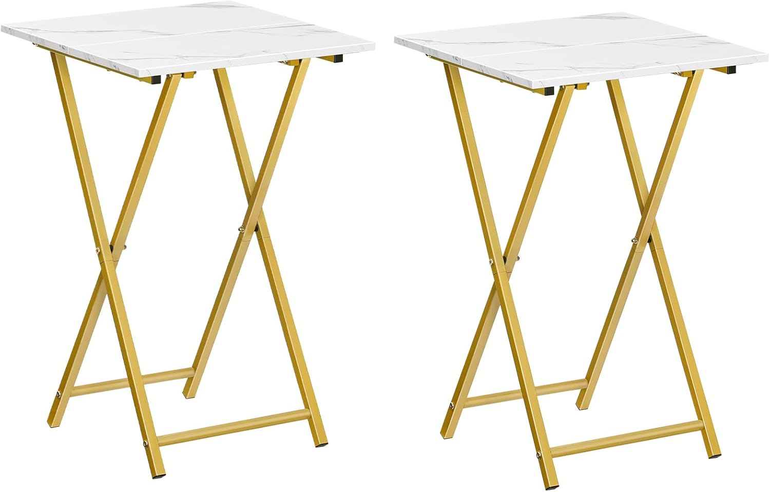 HOOBRO Folding TV Tray Tables, Set of 2 Wooden TV Tray, Portable Sofa Side Table, Industrial Snack Table End Table for Small Spaces, Space-Saving, Easy to Install and Fold, Marble and Gold DM27BZP201