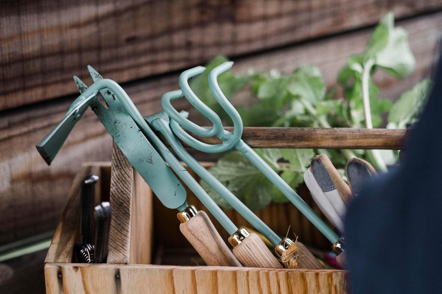 Barebones Cultivator - Weed Remover Tool - Garden Rake and Weeding Tool for Yard Work - Stainless Steel Cultivator for Raking Soil (Ash/Mint)
