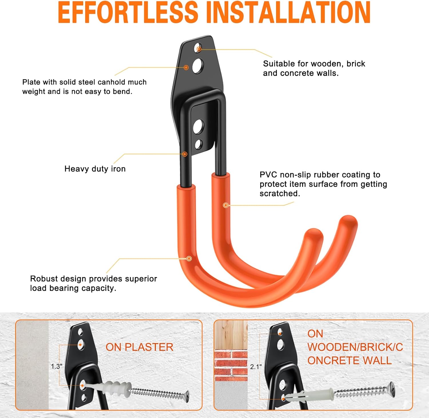 • Versatile: These hooks are perfect for saving space and maximizing storage in your home, apartment, garage, basement, or tool shop. They are versatile and reusable, making them ideal for holding garden tools, hoses, power tools, shovels, brooms, or bulk items.